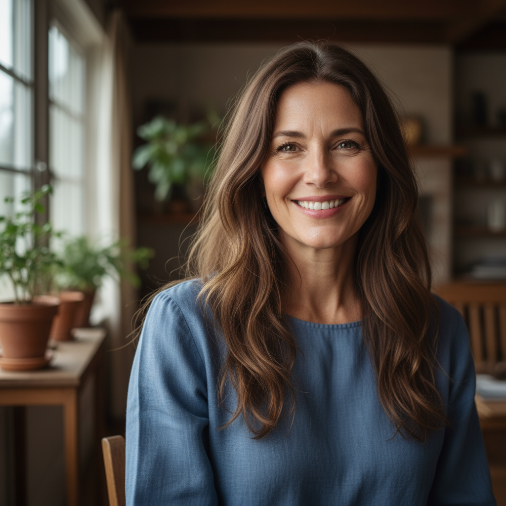 Bearded man in casual attire with warm smile in restaurant setting